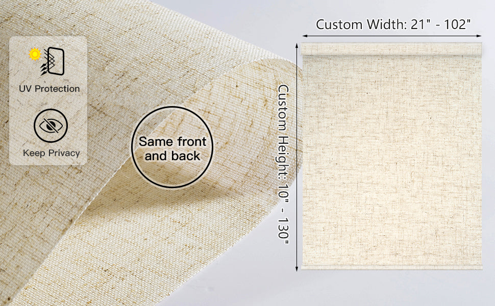 Light-filtering polyester fabric blocks UV rays, filters natural light, and ensures privacy. If you're unsure about the color, we recommend ordering a fabric sample swatch.