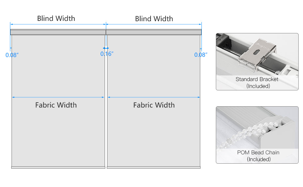 The fabric is slightly narrower (0.16") than the shade to allow smooth operation. Each shade includes standard brackets for hassle-free installation and a bottom rail handle for convenient everyday use.