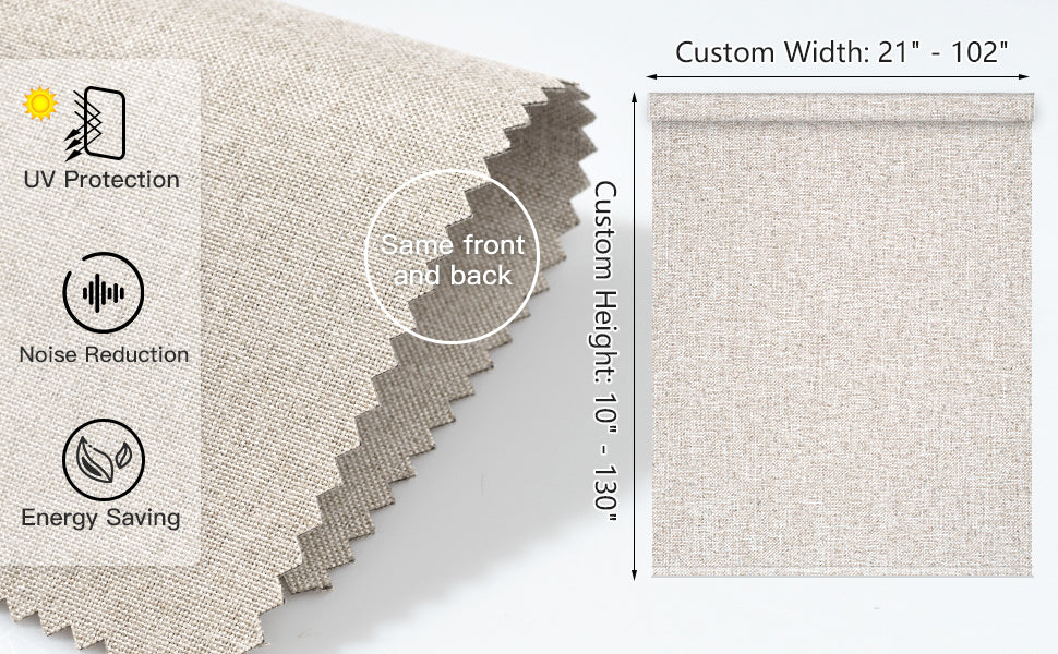 The durable blackout polyester fabric blocks 100% of natural light, reduces UV rays, and ensures privacy. Both the roller shade valance and bottom rod are wrapped in the same fabric as the shade.
