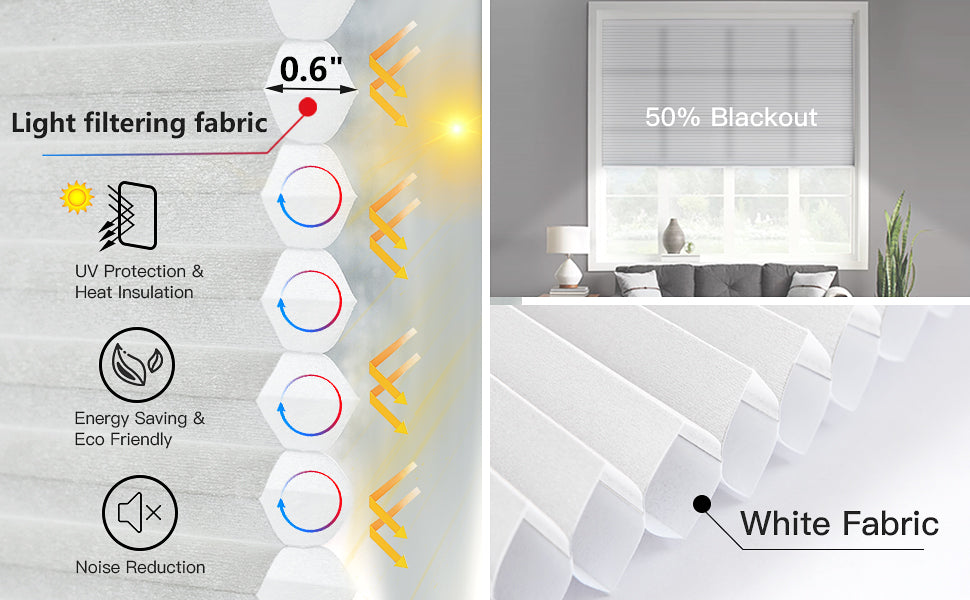 The light-filtering fabric provides privacy while allowing natural light to filter through. Its unique honeycomb-shaped cells help keep your space cool in summer and warm in winter.