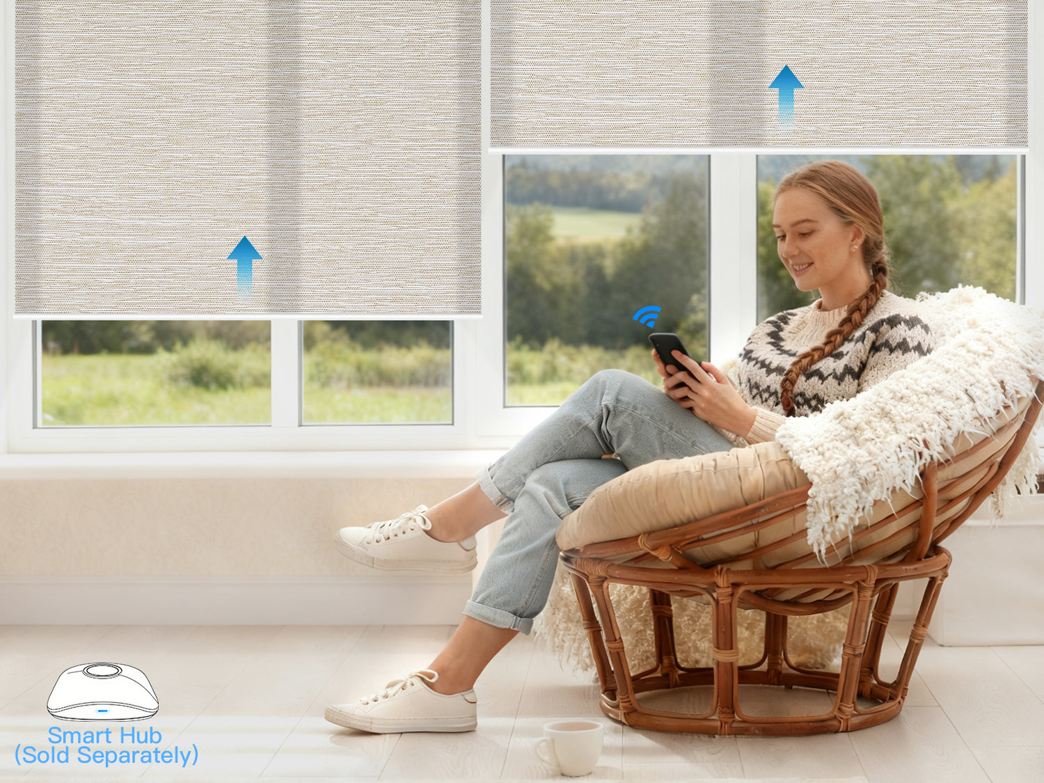 By connecting the shades through a HUB, you can control them remotely via your phone.