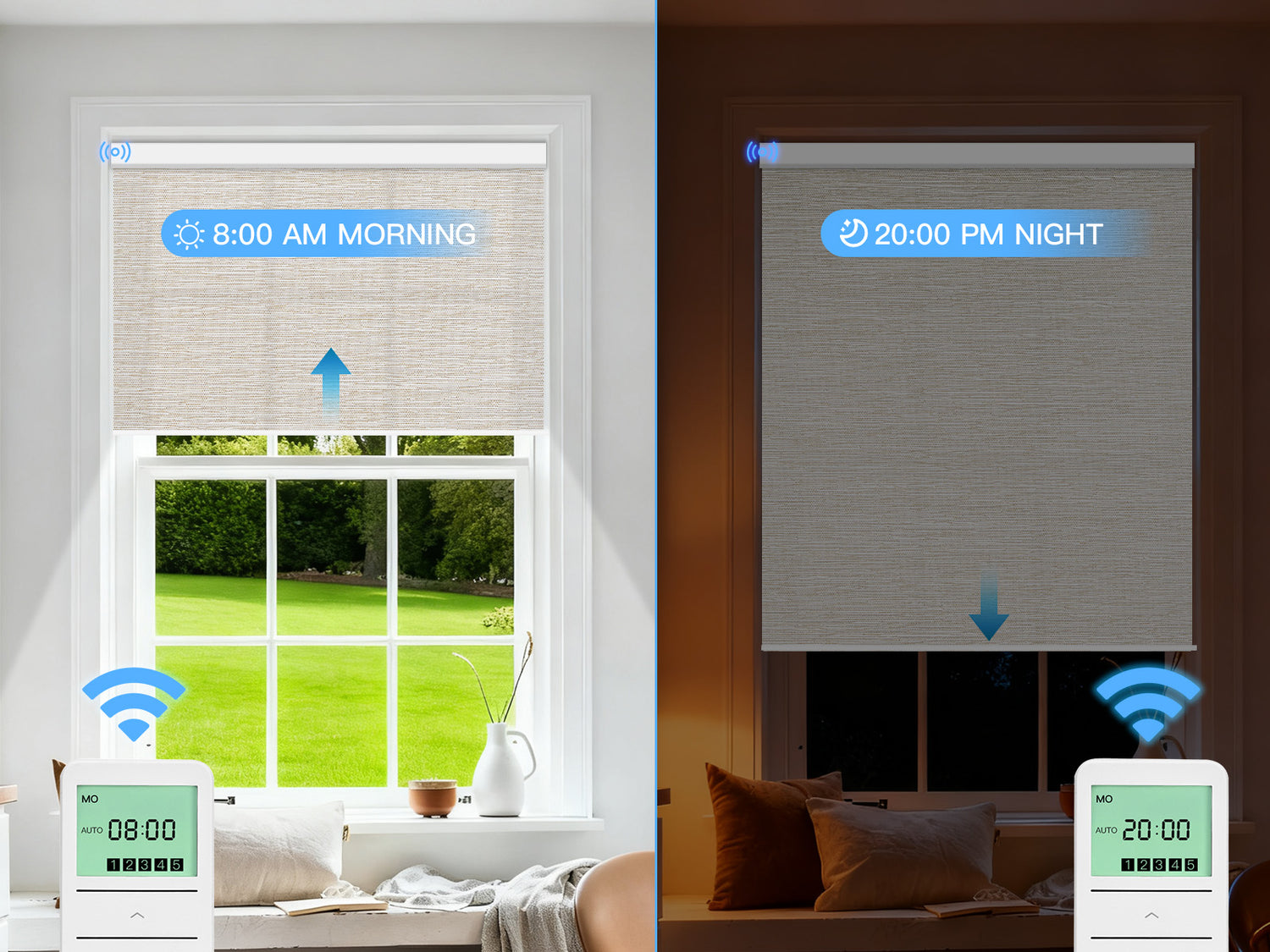 Each automatic shade is pre-programmed before shipping and ready for use with the remote control upon installation. For any questions, please refer to the manual or contact us for technical support. Since each shade is made to order, accurate measurements and careful color selection are essential. We recommend purchasing one blind first before ordering for the entire home.