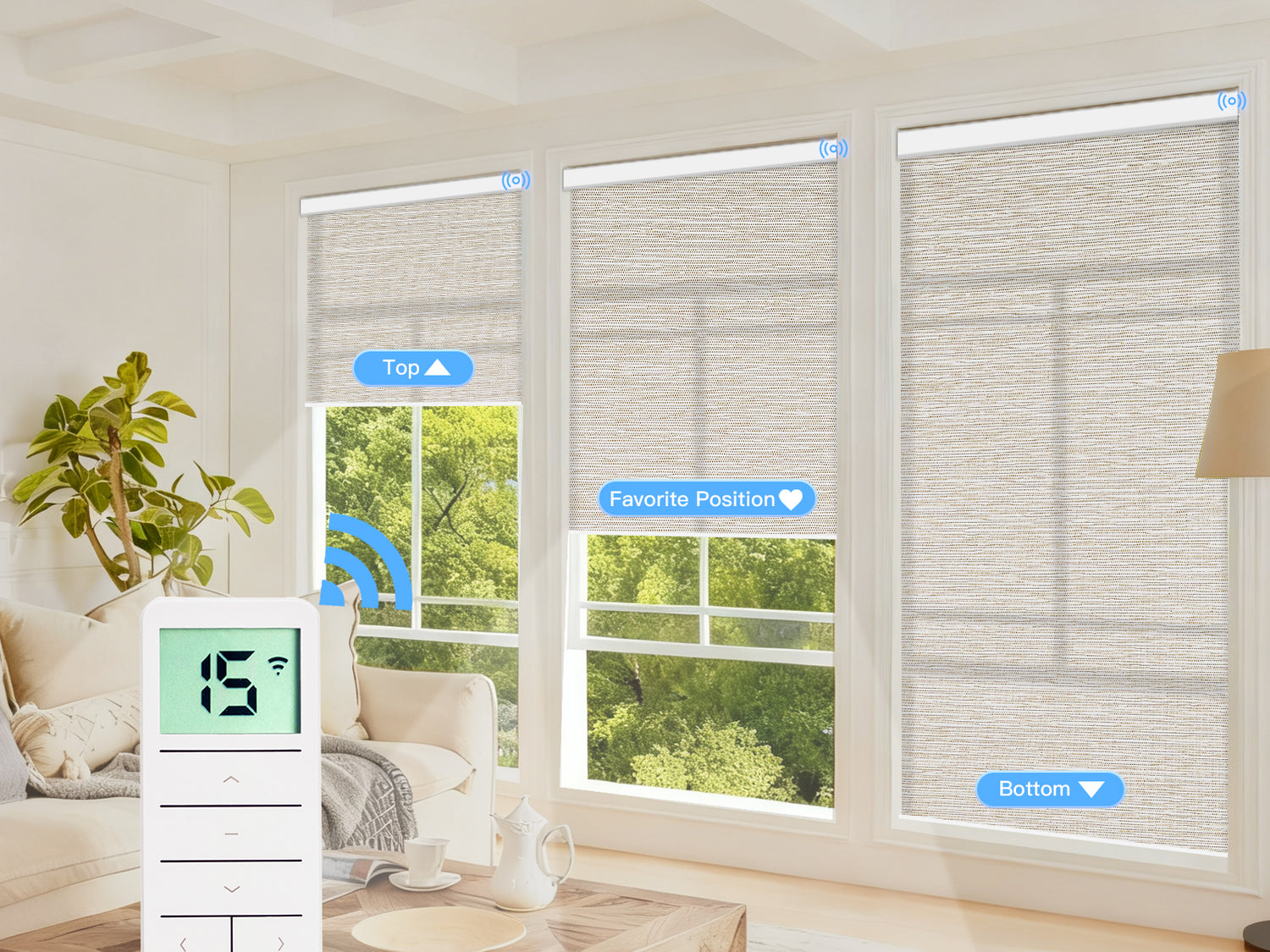 • 15-Channel Remote: Controls up to 15 blinds independently or simultaneously—ideal for multiple blinds.