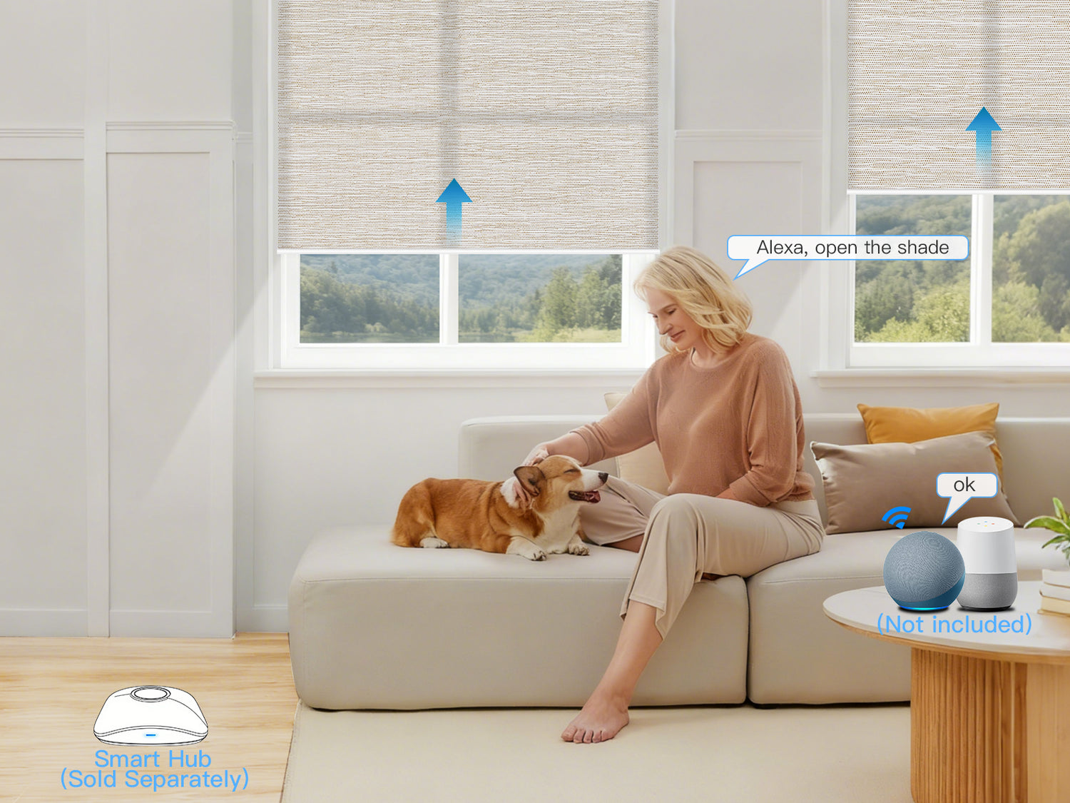 By connecting the shades to Alexa via a HUB, you can control the shades using voice commands.