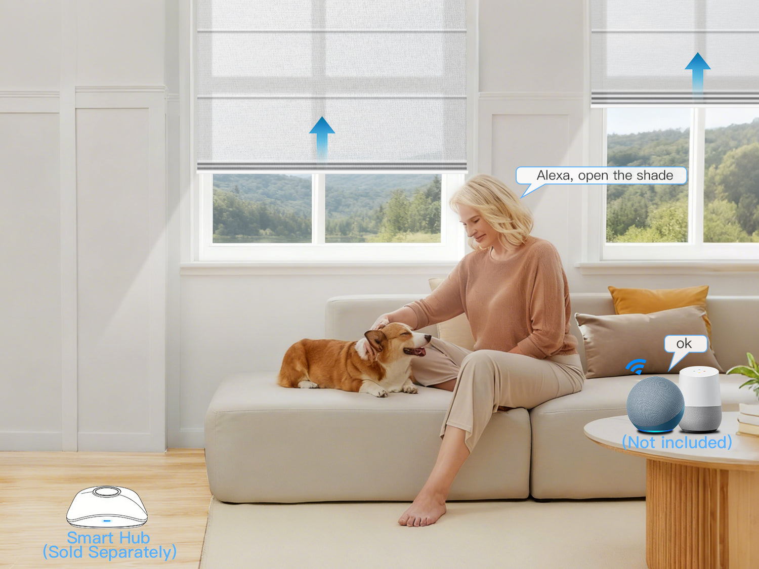 By connecting the shades to Alexa via a HUB, you can control the shades using voice commands.