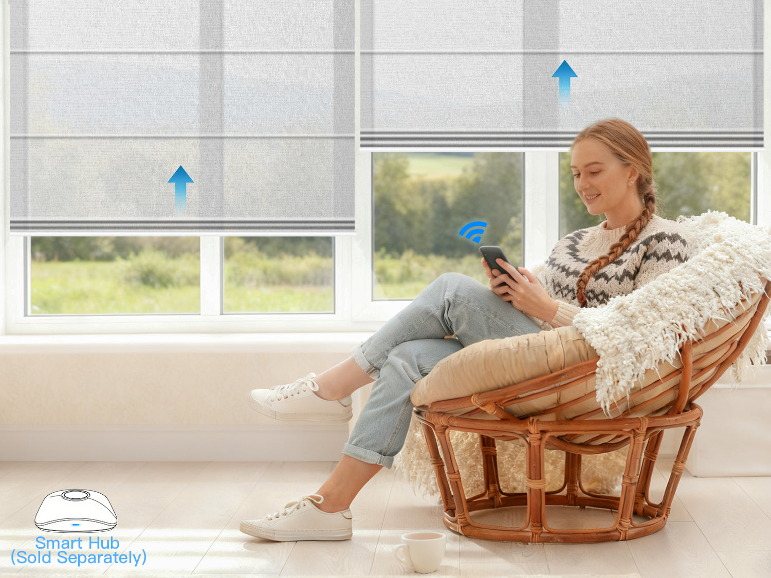 By connecting the shades through a HUB, you can control them remotely via your phone.