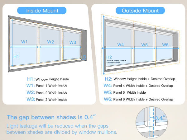 • Outside Mount: Add 6" to width and height to reduce light gaps.