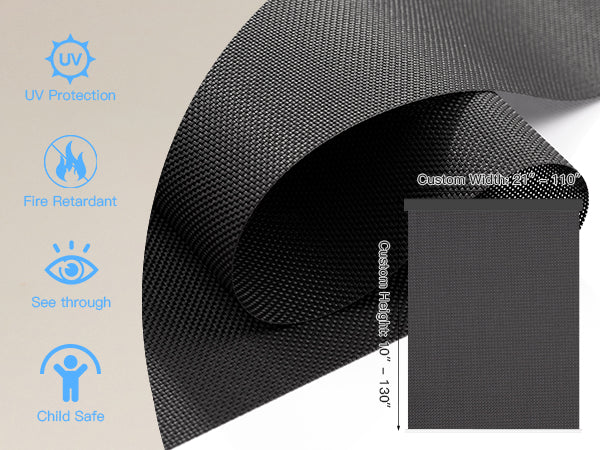 Crafted from fire-retardant, waterproof polyester with a breathable, see-through knit that filters UV rays, reduces glare, and maintains outdoor visibility. The cordless design enhances safety for children and pets. Ideal for living rooms, patios, sliding doors, and offices. For indoor use only.