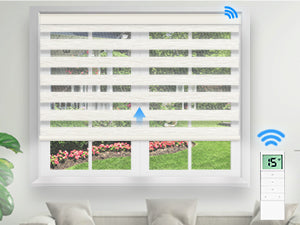 Material: Made with 50%-95% blackout waterproof dual-layer fabric combining light-filtering sheer and banded polyester. The sheer fabric softly filters sunlight and offers a view outside, while the banded polyester ensures privacy and blocks most incoming light. Adjust fabric alignment to control light levels. For perfectly aligned fabric bands across multiple blinds, place a single order to ensure they are produced in the same batch. Ideal for living rooms, patio sliding doors, offices, and more. For indoor use only.