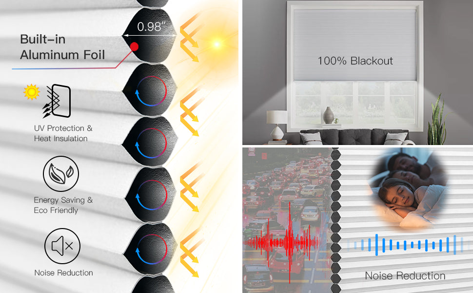 The top down bottom up design lets you adjust light and privacy your way, while the 100% blackout honeycomb fabric blocks all outside light and helps insulate your home. Perfect for bedrooms, nurseries, and media rooms.